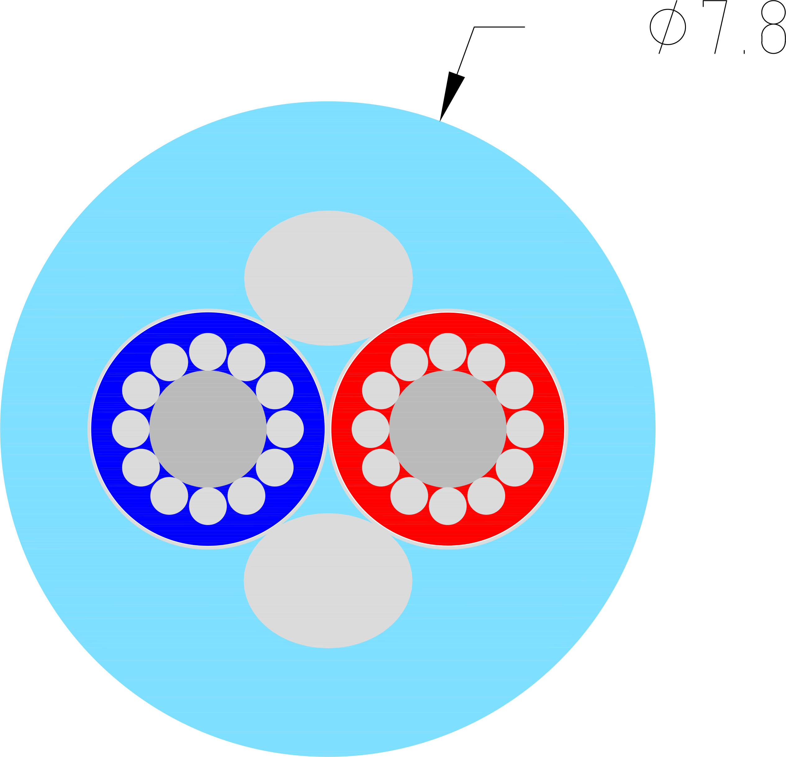 - Buitenmantel: PVC, rond, diameter ca. 7,8 mm